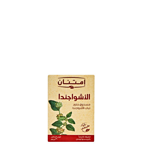 الأشواجندا (مسحوق جذور نبات الأشواجندا الطبيعي 100%) من إمتنان. لمساعدتك على دعم غذائك اليومي. مستخدم تقليدياً في بلاد الهند منذ قرون لمحتواه من العناصر النادرة والمعززة للصحة العامة