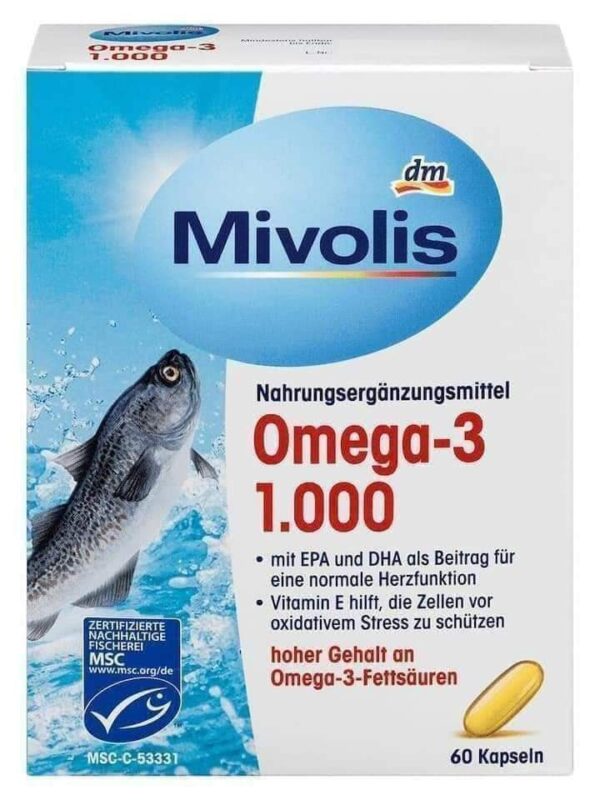 Dm mivolis omega 3 1000 واحد من أفضل أنواع اوميجا 3 المستورد؛ حيث يحتوي علي نسبة عالية من أحماض أوميغا 3 الدهنية EPA و DHA، التي تأتي من مصايد تصطاد الأسماك بطرق صحية آمنة تضمن صحة المخزون على المدى الطويل.