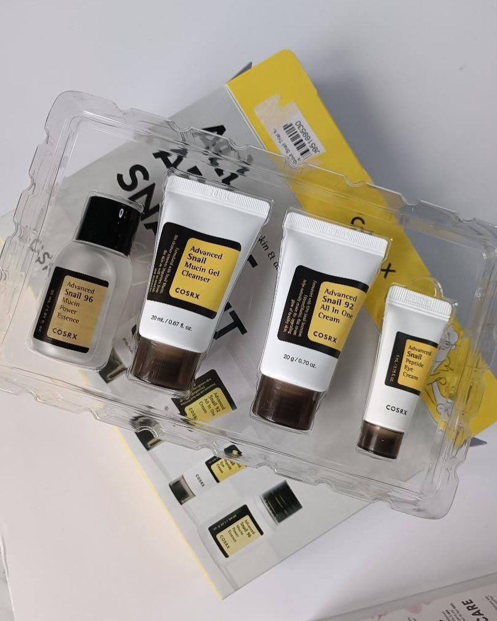- مجموعة الحلزون من كوسركس هي مجموعة متكاملة تحتوي على أربعة منتجات رائعة تعمل بشكل متناغم لتحسين صحة وجمال بشرتك.