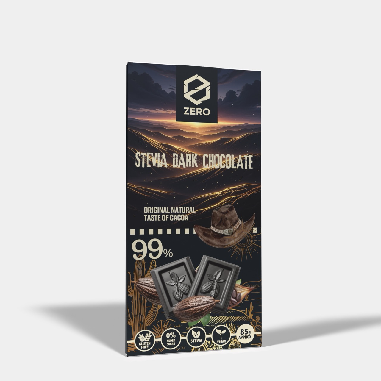 شوكولاتة داكنة ZERO 99% محلاة بـ”ستيفيا” (Stevia) وبدون سكر مضاف 85 جرام