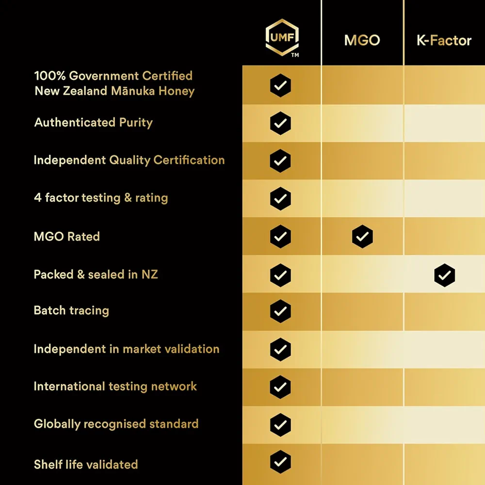 مذر ايرث عسل مانوكا هو الطبيعة الأكثر لذيذة. يعتني فريقنا بالعسل من خلية النحل إلى الوعاء. يوصى بعسل مانوكا لصحتك العامة ورفاهيتك. يعطي دفعة طبيعية للطاقة ويساعد على تهدئة التهاب الحلق. لذيذة في المشروبات الساخنة، يمكن دهنها أو تناولها بواسطة الملعقة! عسل مانوكا أحادي الزهرة مضمون. كل دفعة معتمدة بشكل مستقل لأربعة عوامل: الفاعلية والأصالة والنقاء والنضارة. عسل مانوكا النيوزيلندي معقد بشكل طبيعي مع نكهة مميزة وخصائص فريدة للغاية. يمنح رحيق زهرة شجرة المانوكا الأصلية في نيوزيلندا العسل تفرده. أثبتت الأبحاث العلمية المكثفة في العديد من البلدان أنه يحتوي على 2300 مركب مميز.